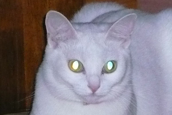 そのため、猫(ぬこ)のシロの目がピカピカと光りました。