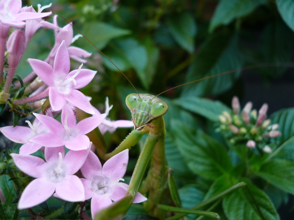 このカマキリ、しばらく花のところにいましたが知らないうちにいなくなりました。